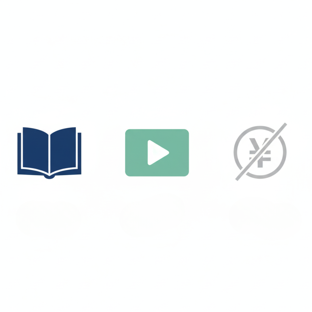 - 視覚(動画): 物語の主人公が司会者と共に、難解なテーマについて質疑応答します。楽しい会話を聞きながら学びます。